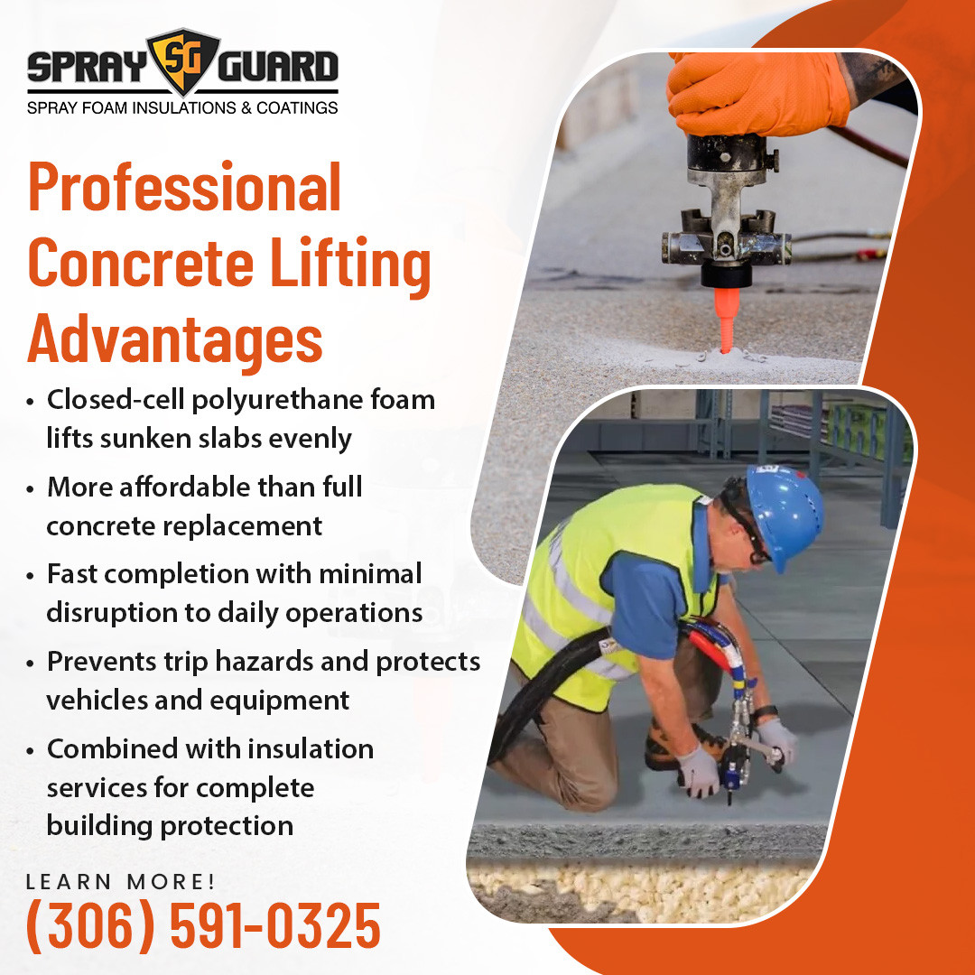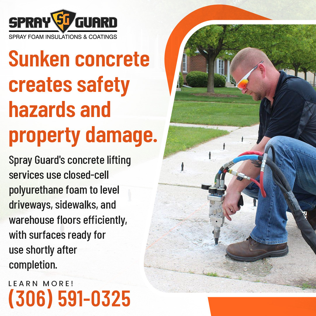 Regina, Saskatchewan – Spray Guard Spray Foam, a leading provider of insulation and concrete solutions in Regina and across Saskatchewan, offers professional services in concrete lifting in Regina, concrete leveling in Regina, slab jacking in Regina, and detailed concrete lifting services in Saskatchewan. The company helps homeowners, businesses, and farms maintain safe, level surfaces while improving indoor comfort, energy efficiency, and overall building performance through advanced spray foam insulation.