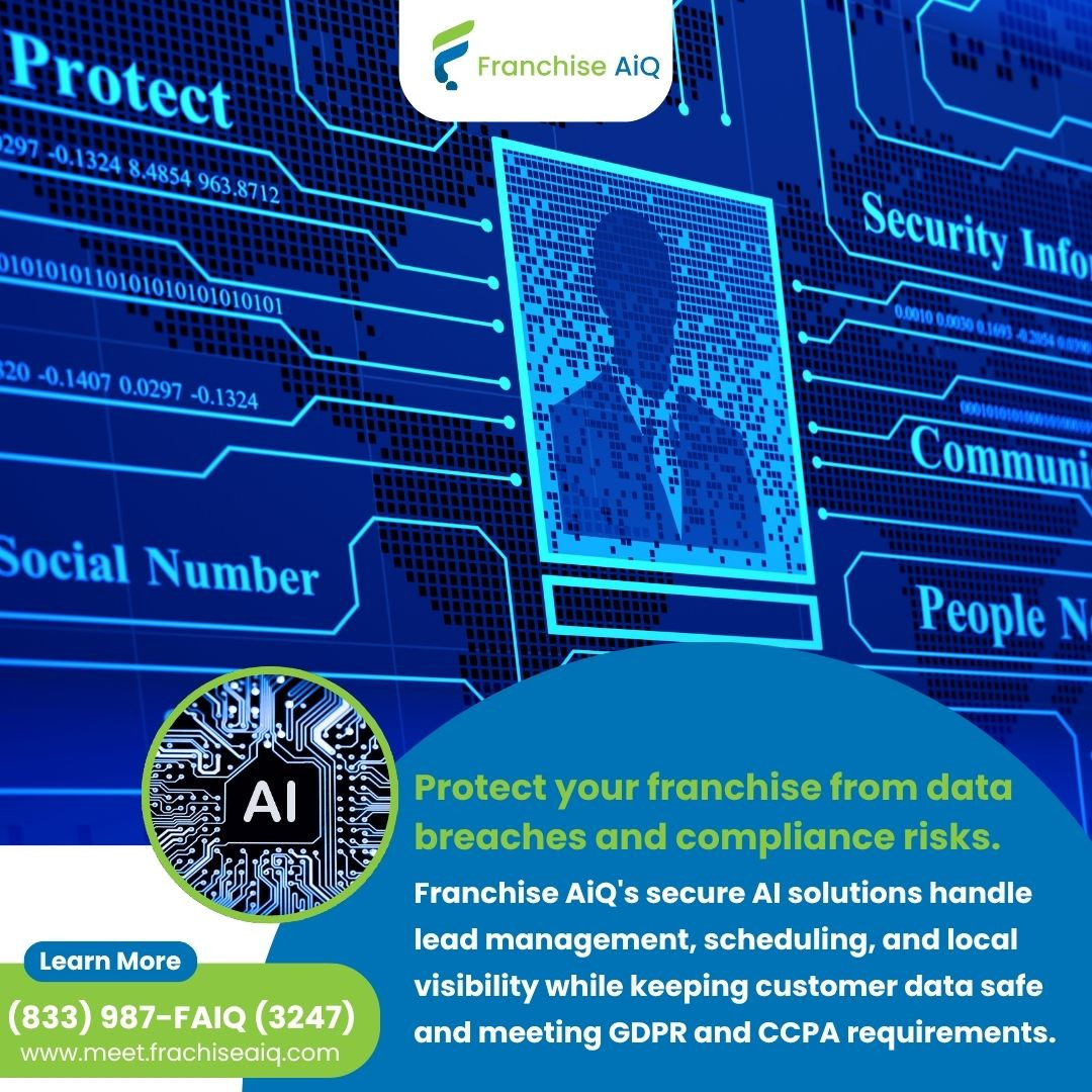 Secure your franchise with Franchise AiQ and manage AI security franchises, franchise data protection compliance, and AI privacy regulations across all locations. Streamline lead management, appointment scheduling, and local visibility while keeping customer data safe. Protect your brand from risks and improve operational efficiency.