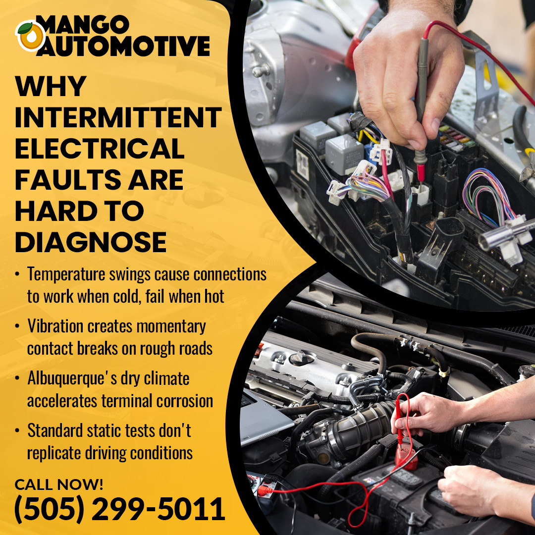 Albuquerque, NM - Mango Automotive is addressing one of the most persistent frustrations for local drivers: electrical problems that come and go without warning. Known as intermittent electrical faults, these issues disrupt daily driving but often vanish before a mechanic can identify the cause. With advanced diagnostic tools and a deep understanding of local driving conditions, Mango Automotive delivers focused electrical diagnostics in Albuquerque to identify and fix these hidden vehicle problems.