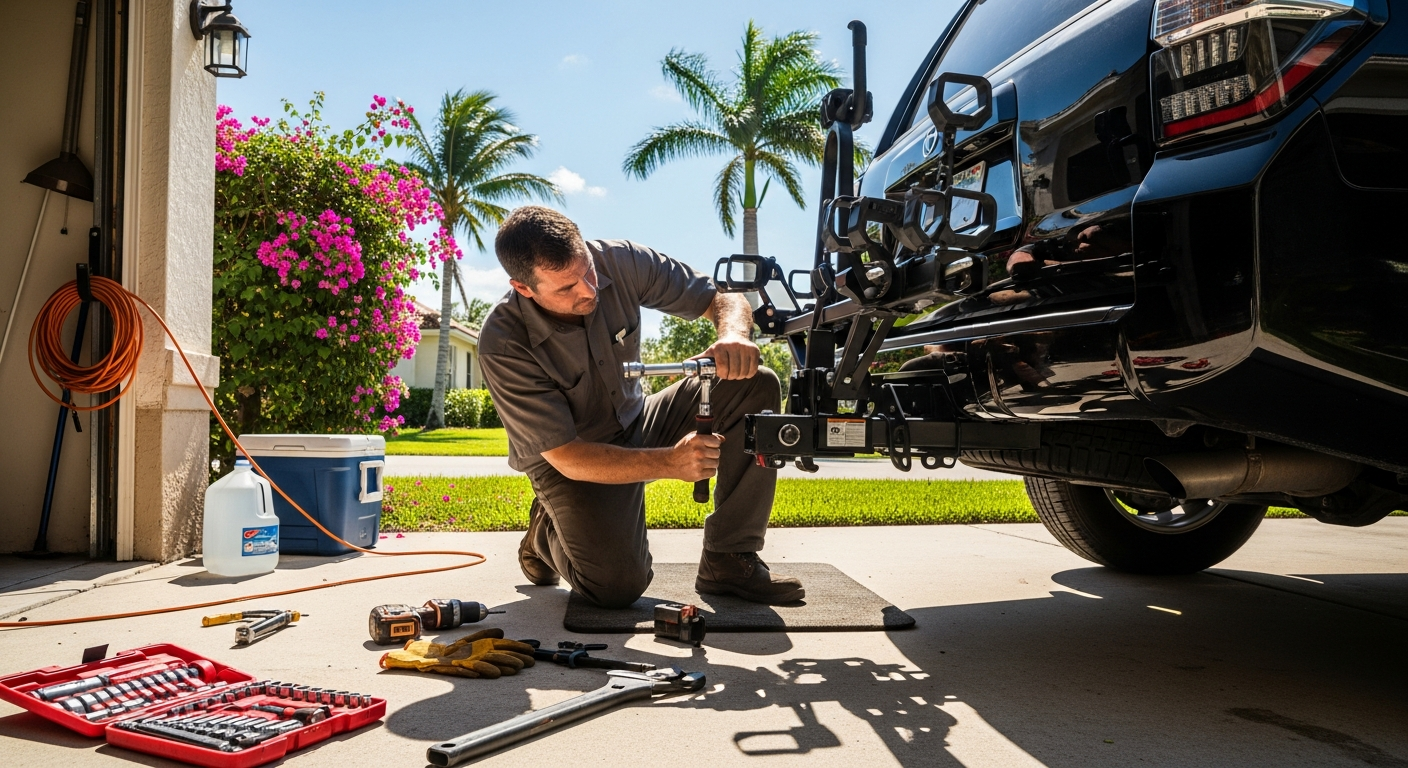 With the arrival of cooler fall weather in Florida, many bicycle enthusiasts are eager to hit the trails, but transporting a bike usually requires a bicycle carrier or trailer that attaches to a vehicle using a hitch. Traditional hitch shops typically require customers to bring their vehicles to a fixed location and wait for completion, taking up time on prime bike-riding weekends.